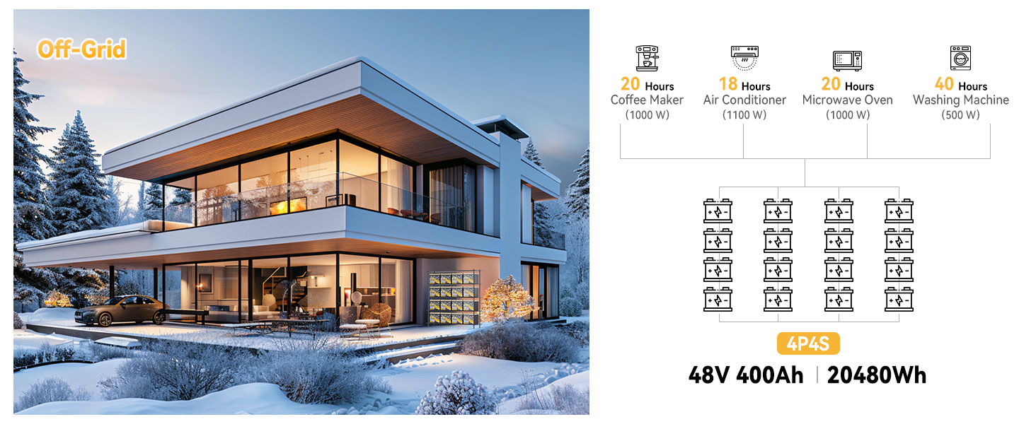 [BMS amélioré avec protection basse température] Notre BMS amélioré offre une protection complète contre les surcharges, les décharges excessives, les surintensités, les courts-circuits, les surchauffes et les basses températures. Il inclut une protection contre les surcharges, une récupération automatique (30 s) et une fonction de précharge. La charge est automatiquement interrompue en dessous de 0 °C, la charge reprend au-dessus de 5 °C et la décharge est interrompue en dessous de -20 °C. Ce mécanisme de coupure de charge basse température garantit des performances, une capacité et une longévité optimales de la batterie, minimisant ainsi les risques liés au froid.